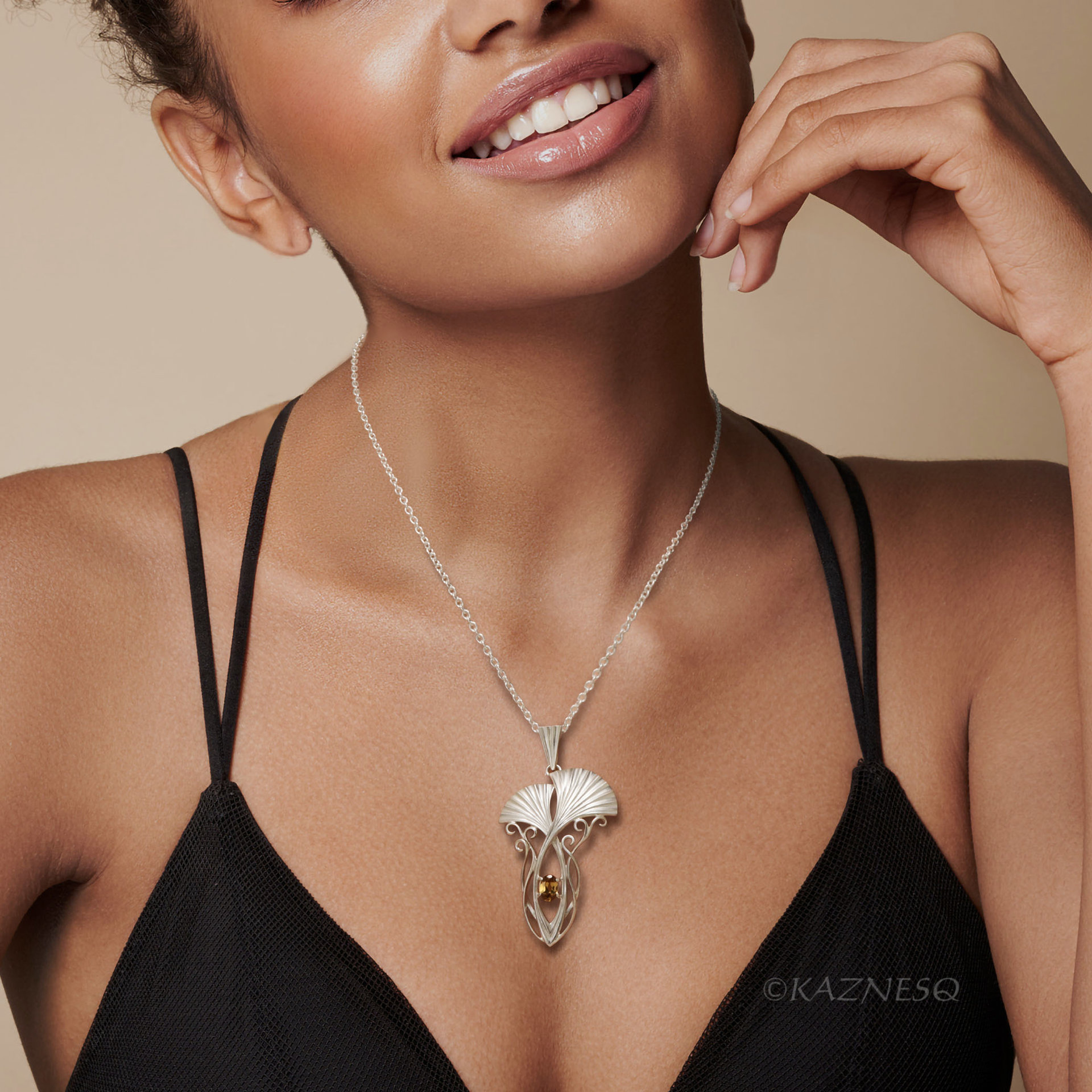 This ginkgo pendant, crafted in the Art Nouveau style, is made from silver sheet and bars. A skilled artist uses saws and files to shape it by hand, paying special attention to detailing the leaf veins and bail.