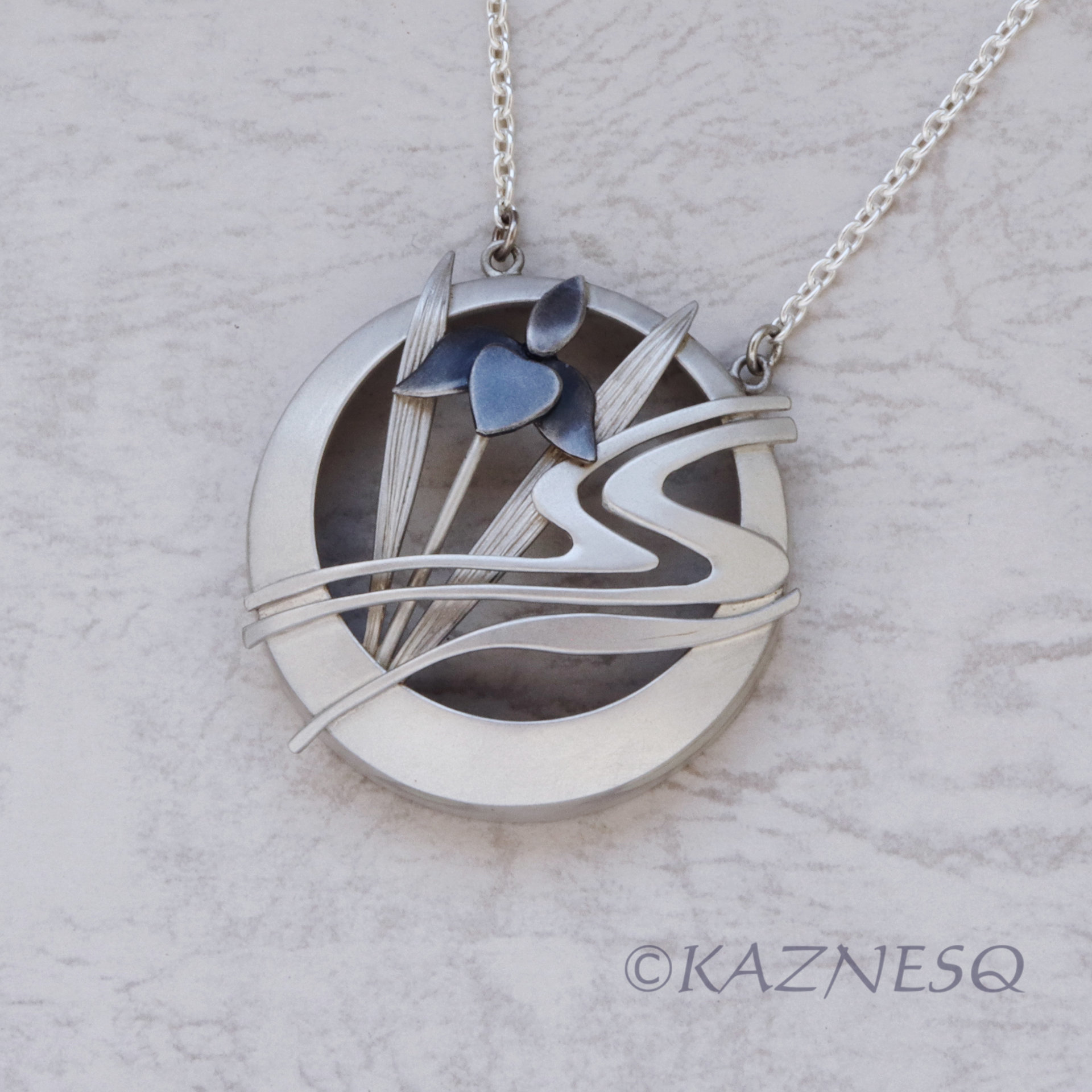 The pendant necklace is made of sterling silver finished mainly matte so that you can see the shapes clearly.