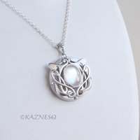 At the heart of the pendant lies a luminous oval quarts lined with white mother-of-pearl, creating a mesmerizing play of iridescence that shift with every movement.