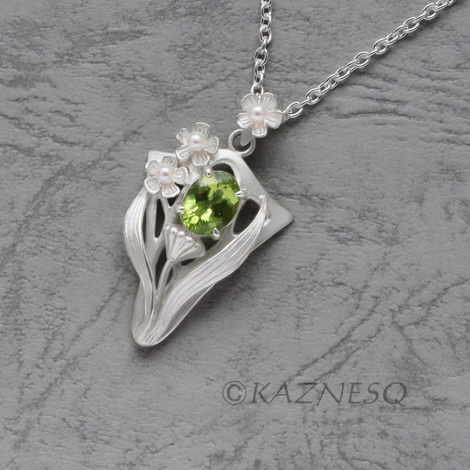 The floral pendant with a green gem will match your Spring and Summer fashion.