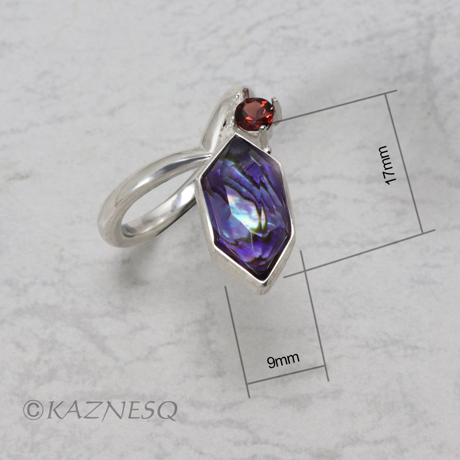 Introducing my exquisite blue-purple stone, the Amethyst Paua Shell Ring. This captivating piece features a stunning amethyst adorned with a delicate Paua shell lining. With the iridescent nature of the shell, this ring showcases a mesmerizing array of colors that will leave you breathless.