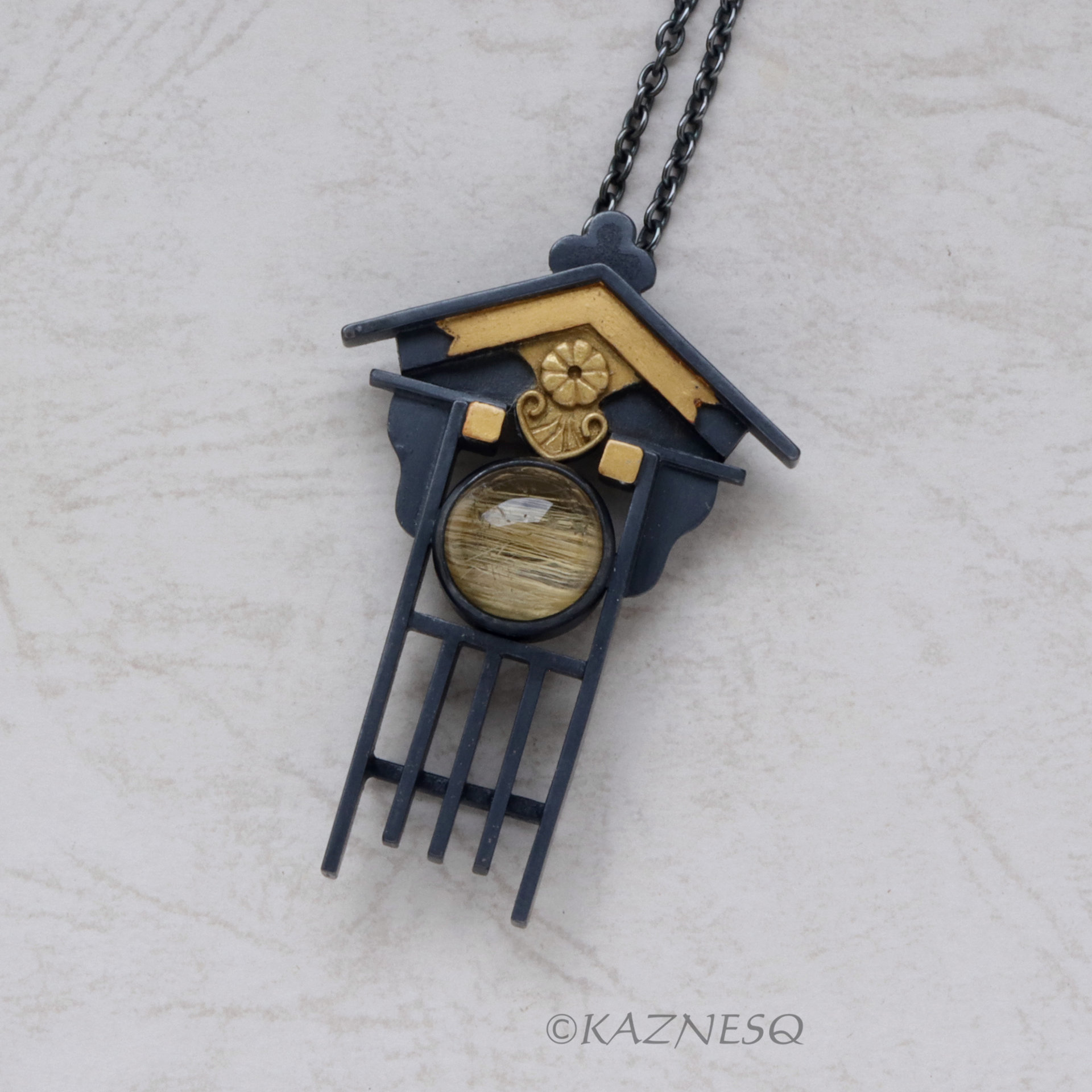 The motif is a traditional Japanese facade of a shrine or similar structure.