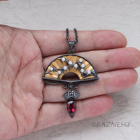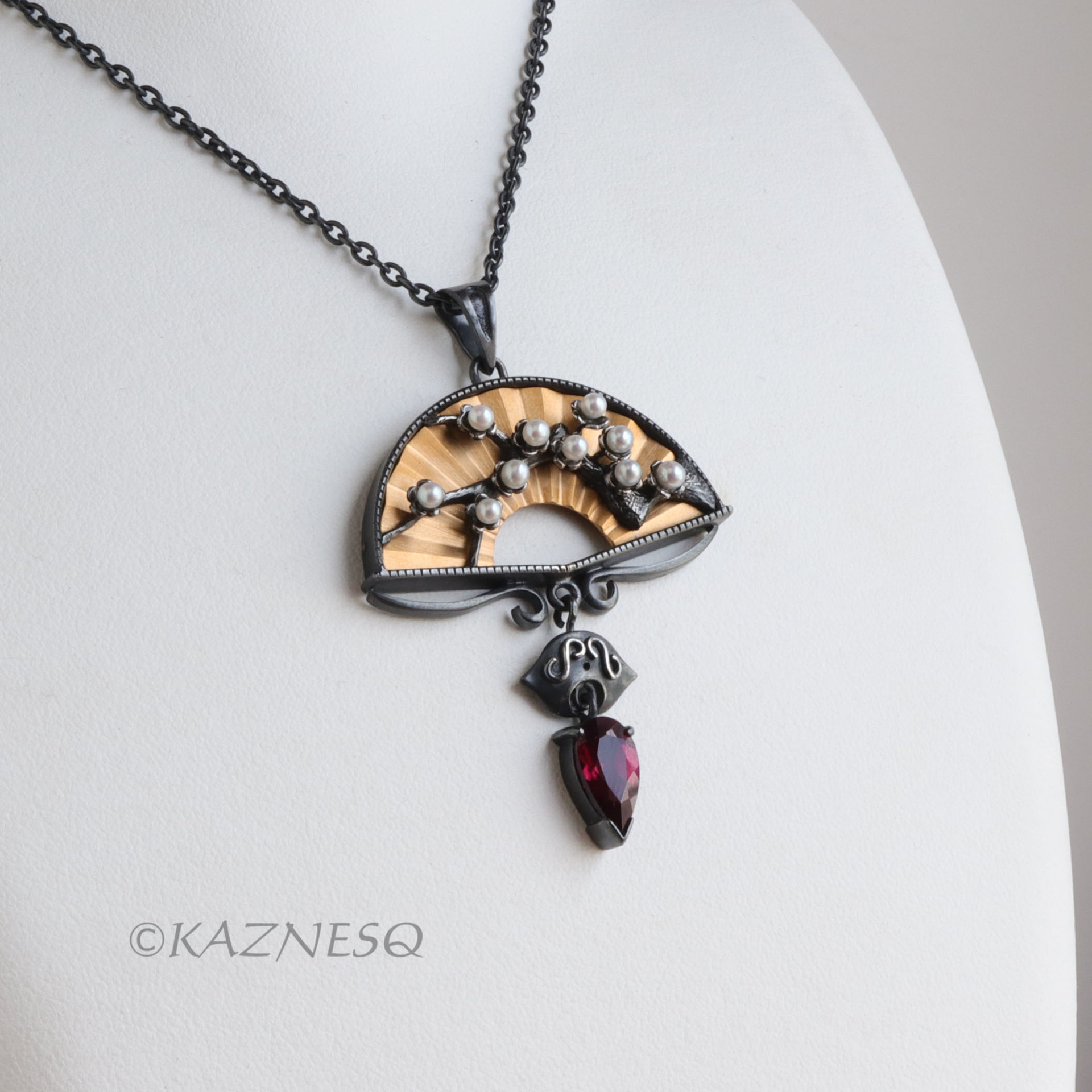 This necklace embodies Japan's taste and culture with its symbolic plum tree motif and opulent gold-plated fan.