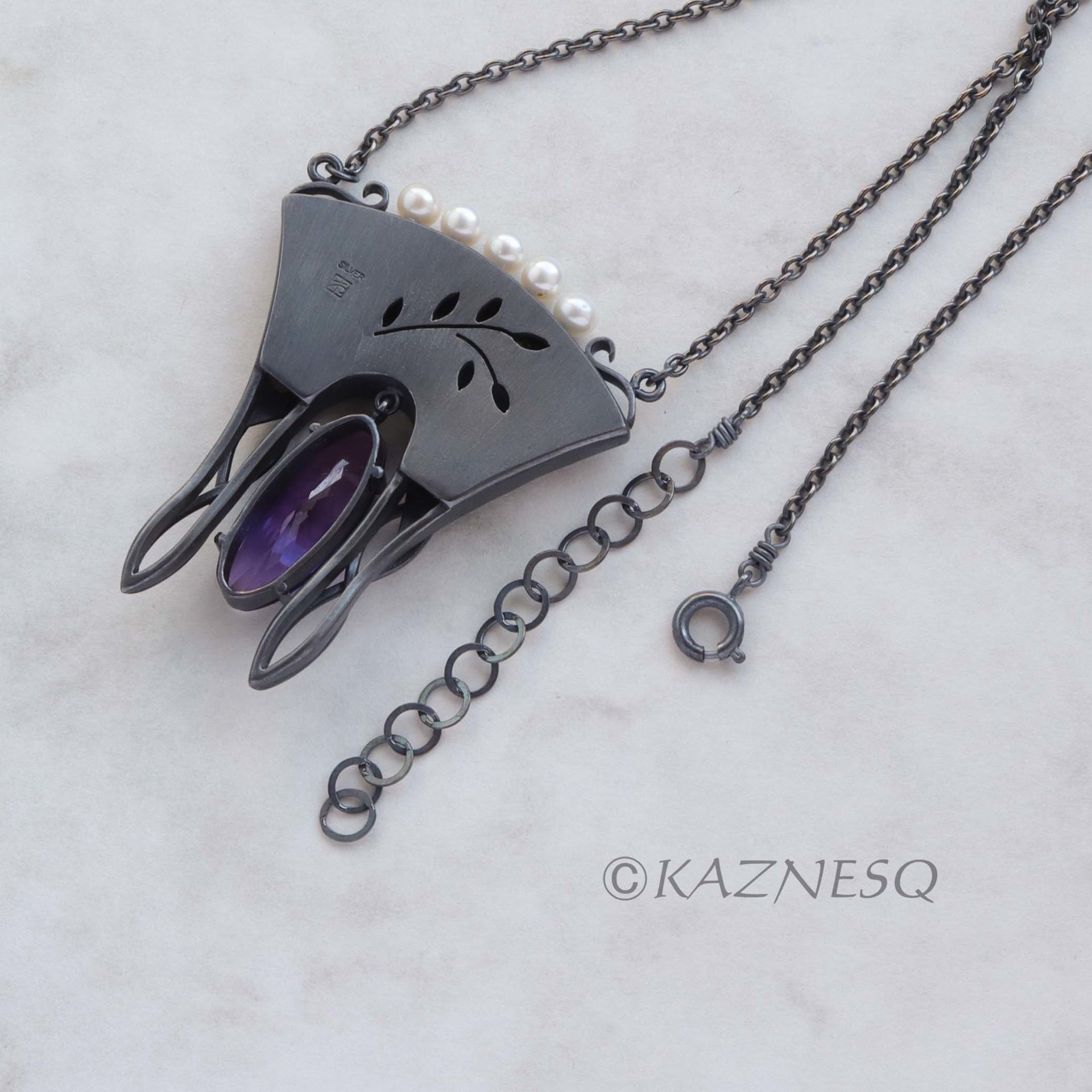 Embrace the allure of Art Nouveau with this pendant's oxidized silver body.