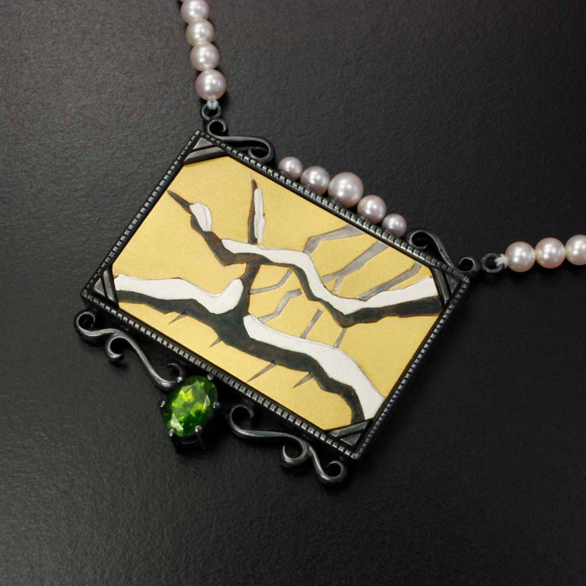 The main picture is made of 4 metals, sterling silver, fine gold, copper, and fine silver, by a technique called Keum Boo.
