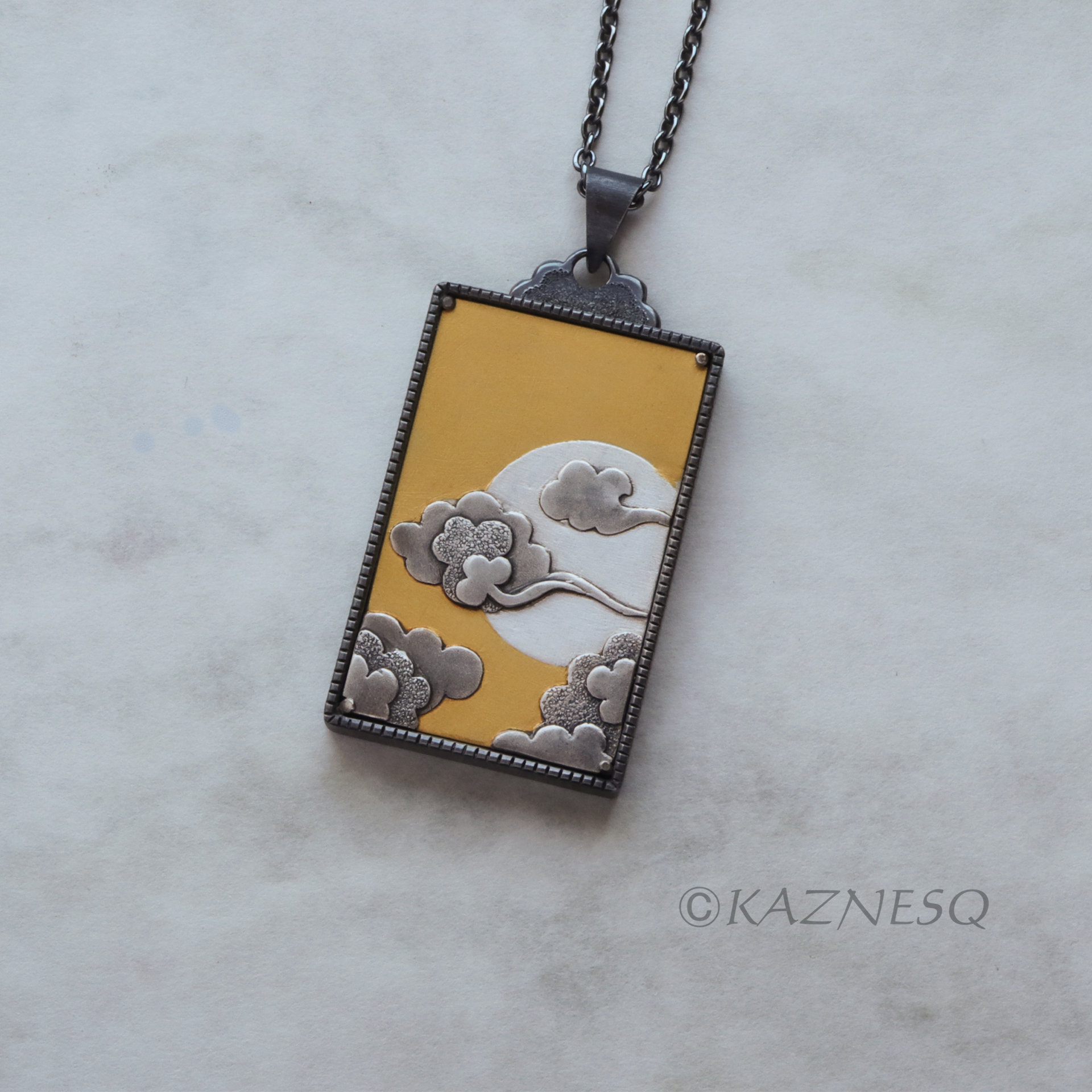Asian clouds and the sun motif gold and silver Keum Boo necklace