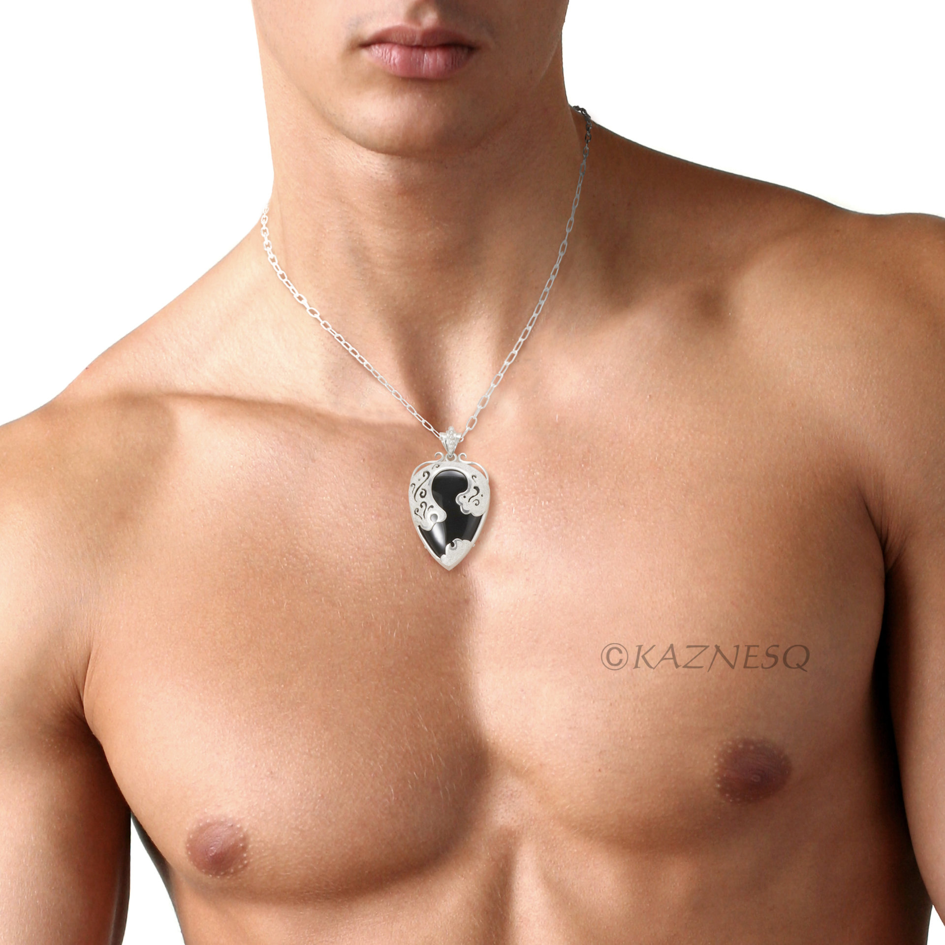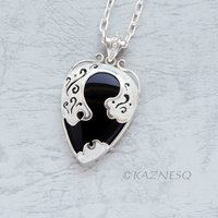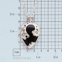 Unisex: Black onyx silver openwork Japanese Koshirae motif pendant necklace